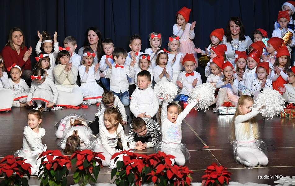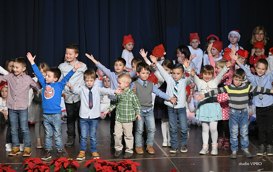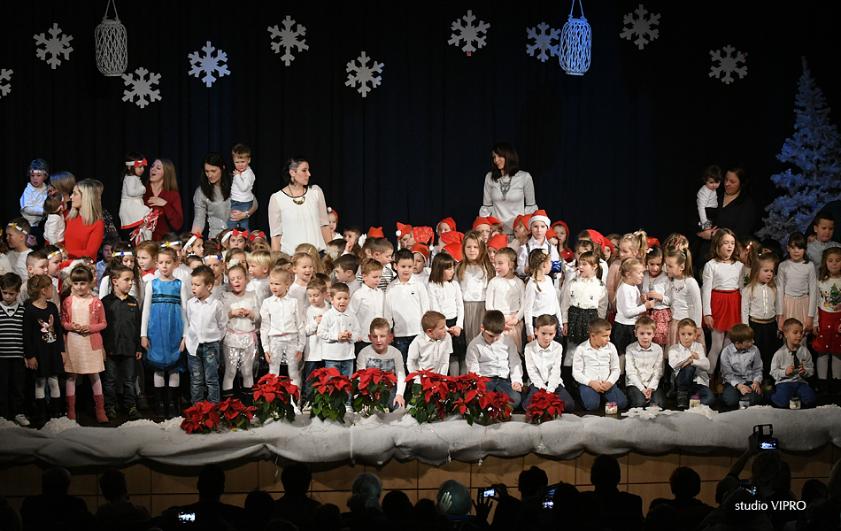 Djeca su uživala na pozornici u koreografijama božićnih pjesama, koje su sami izmislili, naravno, uz „malu“ pomoć odgajatelja. U prepunoj dvorani uživali su i njihovi roditelji, bake, djedovi, prijatelji…ali i zamjenik gradonačelnika, gosp. Kvakan Zdravko, koji je pozdravio sve prisutne i najavio rekunstrukciju vrtića u novoj 2018.g. Veselimo se tome.